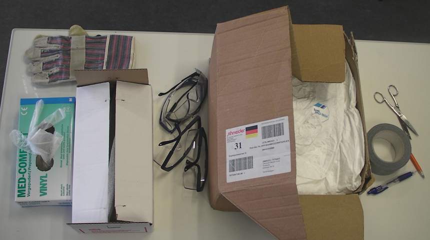 keine edle Kleidung tragen, darüber weiße Kittel und Schutzbrille. Dieser