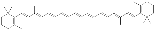 Dazwischenliegendes absorbieren. Organische Stoffe haben einen typischen Trick, wie sie sich bunt machen: Die konjugierte Doppelbindung. Sie tritt in organischen Molekülen dann auf, wenn Einfach- und Doppelbindung sich abwechseln. Z.B. das Carotin aus der Karotte gibt ihr die rote Farbe. Bricht man dieses Molekül in der Mitte durch - das kann durch den UV-Anteil des Tageslichtes auf der Haut geschehen - ist es überdies Vitamin A. Dieses Vitamin A wiederum wird umgebaut zum Sehpurpur der Stäbchen-Zellen in der Netzhaut des Auges. Damit dann sehen wir hell und dunkel: