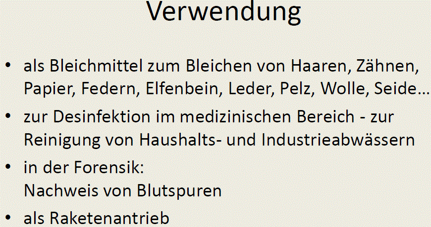 Einsatz von Wasserstoffperoxid (Dihydrogenoxid), H2O2