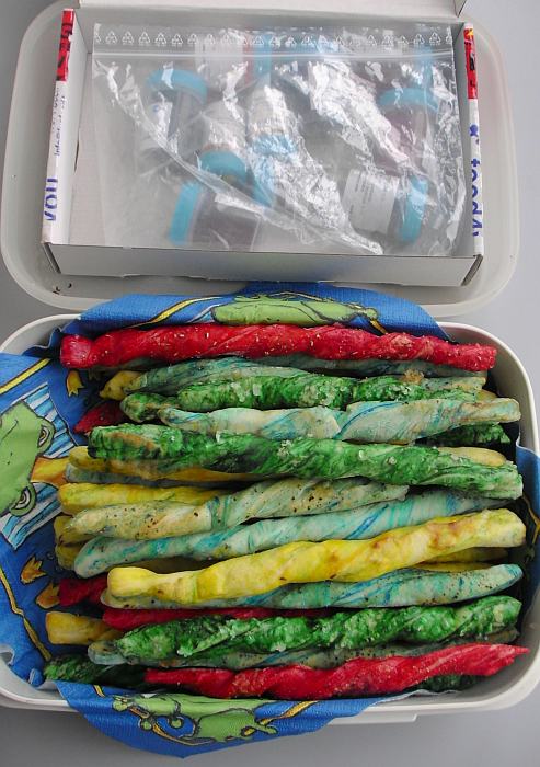 Salzstangen kommen allerdings knallharte künstliche Farbstoffe zum Einsatz.
