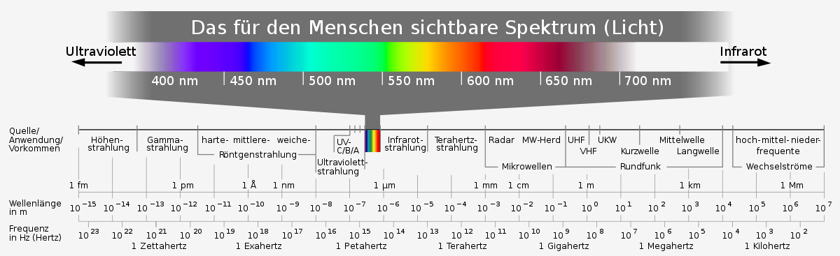 Wir können Licht sehen zwischen den Wellenlängen 380 bis 640 nm