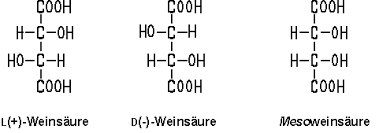 |  | Links sehen wir verschiedene Strukturformeln der Weinsäure,